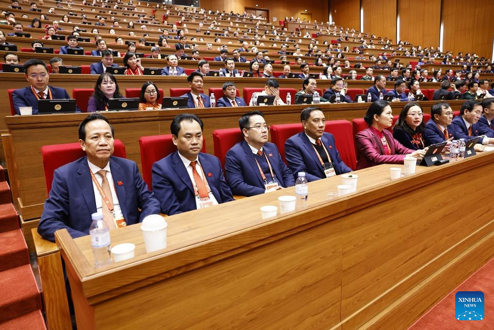 This photo taken on Jan. 23, 2026 shows a scene at the first plenary session of the 14th Communist Party of Vietnam (CPV) Central Committee in Hanoi, Vietnam. The first plenary session of the 14th CPV Central Committee voted for the CPV Political Bureau, Secretariat and Inspection Commission on Friday, according to a communique after the meeting. (VNA via Xinhua)