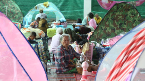 People gather in evacuation center in Sa Kaew province, Thailand
