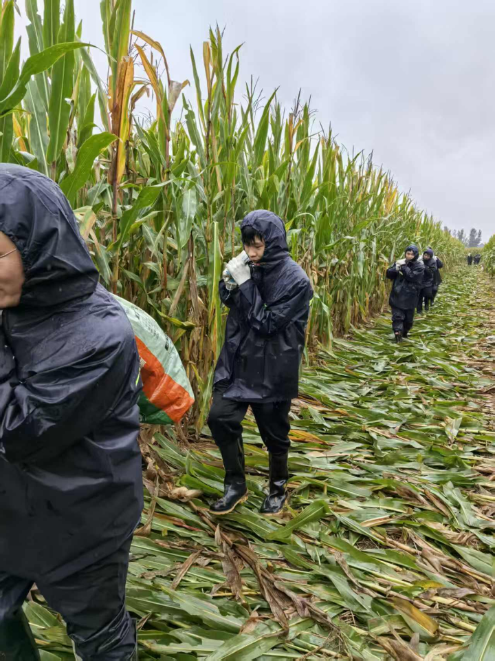 在抢收上,对能实施机械收割的,根据田间墒情动态调整机械作业路线,确保履带式收割机“歇人不歇机”,对积水严重、机械无法抵达的地块,组织农户以“亲友互助+人工抢收”模式,采取手掰、肩扛、三轮车转运等方式,确保成熟作物应收尽收。