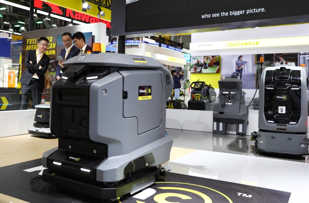 这是11月5日在第八届进博会技术装备展区德国卡赫展台拍摄的清洁设备展品。