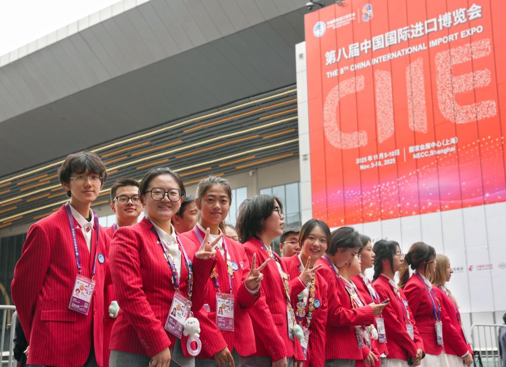 这是11月5日拍摄的即将上岗服务的第八届进博会志愿者。