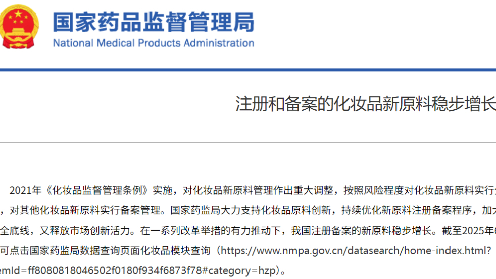 國(guó)家藥監(jiān)局關(guān)于發(fā)布支持化妝品原料創(chuàng)新若干規(guī)定的公告(2025年第12號(hào))