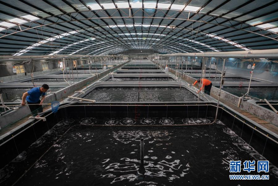 3月17日,河北省黃驊市一家養(yǎng)殖專業(yè)合作社的工人在養(yǎng)殖車間里工作。近年來,河北省黃驊市根據(jù)自身產(chǎn)業(yè)基礎(chǔ),瞄準(zhǔn)市場調(diào)結(jié)構(gòu),走集約化發(fā)展、產(chǎn)業(yè)化經(jīng)營的現(xiàn)代漁業(yè)發(fā)展新路,推動以水產(chǎn)育苗業(yè)、養(yǎng)殖業(yè)等為代表的現(xiàn)代漁業(yè)發(fā)展,引領(lǐng)漁民轉(zhuǎn)產(chǎn)轉(zhuǎn)業(yè)和產(chǎn)業(yè)轉(zhuǎn)型升級。目前,黃驊漁區(qū)海水育苗養(yǎng)殖企業(yè)108家,直接提供就業(yè)崗位近5000個,年產(chǎn)值達(dá)8億元,現(xiàn)代漁業(yè)成為漁民增收致富的“新引擎”。