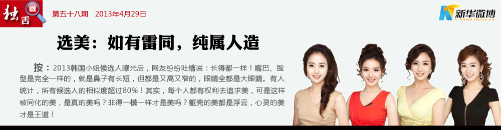 【選美?公然作弊?】 整容技術(shù)越來(lái)越先進(jìn),偽造美麗卻到了該反思的地步。韓國(guó)小姐的比賽分為真、善、美三個(gè)競(jìng)賽部分?,F(xiàn)在看來(lái),比賽已經(jīng)無(wú)法體現(xiàn)“真”這個(gè)部分了。