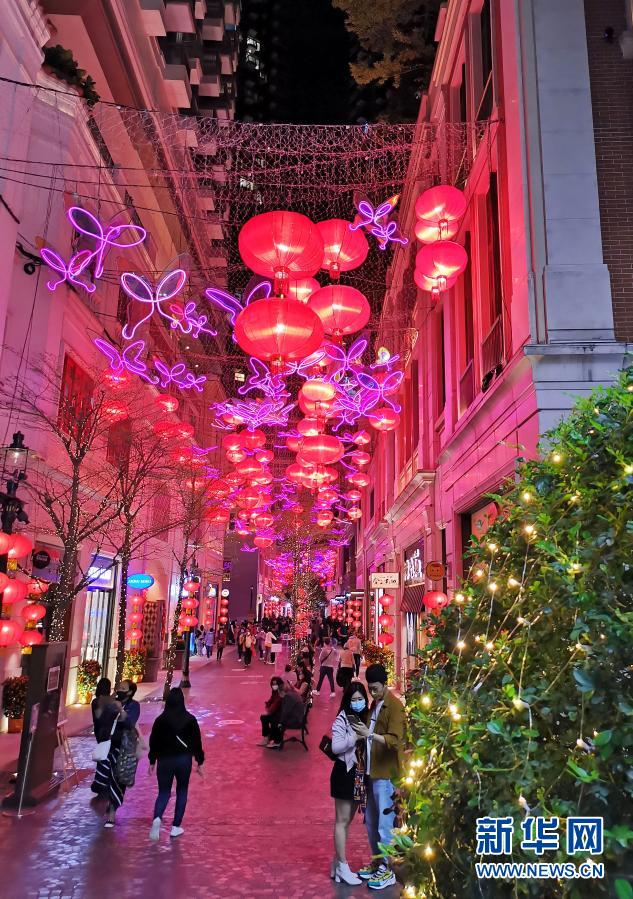 農(nóng)歷牛年正月初一上午,香港著名商圈銅鑼灣一帶,雖受新冠肺炎疫情影響,人流較往年要少許多,但仍處處透露著新春喜慶氣息。商家門(mén)前大多擺著大盆年桔,上面綴著許多小紅包,春聯(lián)、櫥窗上的“?!弊执盎ɑ蛉缫饨Y(jié)等吉祥飾品,隨處可見(jiàn)。透過(guò)商場(chǎng)門(mén),大盆桃花枝不時(shí)映入眼簾。