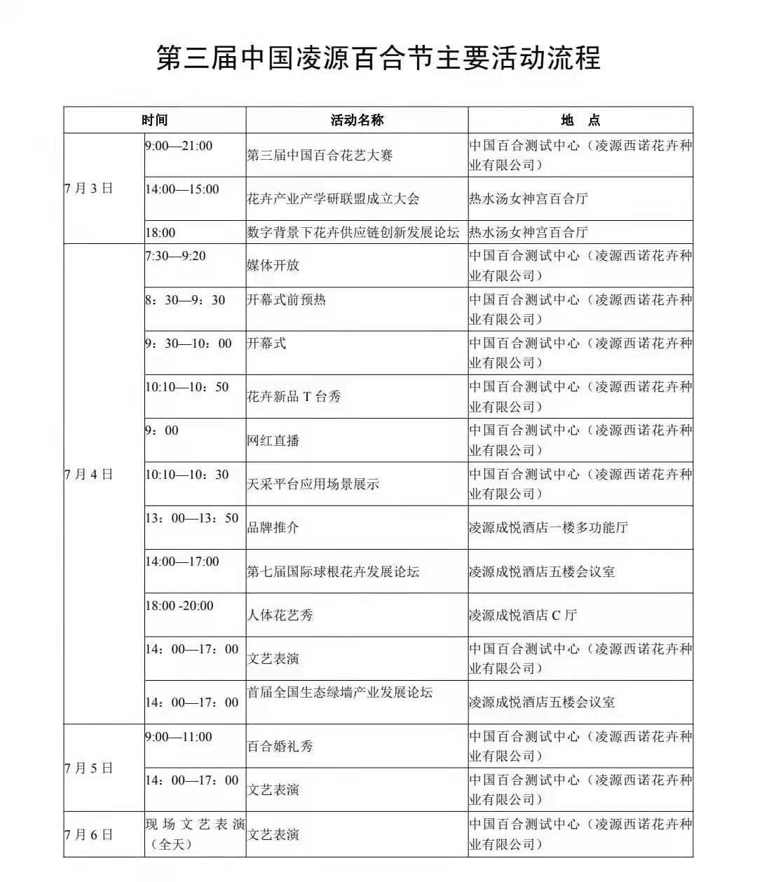 第三屆中國凌源百合節(jié)活動(dòng)安排