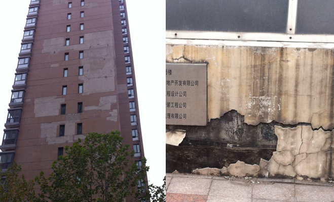 小區(qū)內部環(huán)境較好,與處于同一區(qū)域的富力城相比要安靜許多,很適合老人和孩子居住。但小區(qū)樓體的外立面的確會降低小區(qū)的居住品質,小區(qū)外立面從遠處看像是打了很多“補丁”,到了近處觀察是外立面的貼磚掉落,只剩下了墻體的水泥裸露在外。