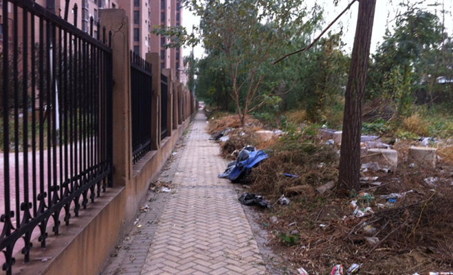 當記者走到小區(qū)的北面,發(fā)現(xiàn)小區(qū)圍欄較矮,很容易翻過柵欄進入到小區(qū),并且沒有看到監(jiān)控設備,小區(qū)后面雜草叢生,由于長時間無人清理,儼然變成了垃圾場。
