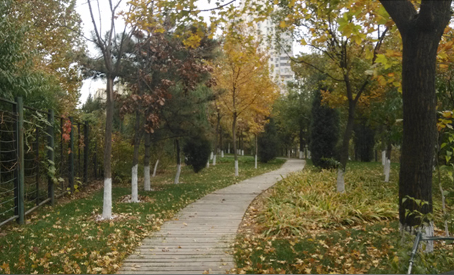 項(xiàng)目主要進(jìn)出口在南側(cè),其綠化較好,由園林覆蓋道路一側(cè),頗有一番寫意園林的詩情畫意。園林內(nèi)置一條曲境幽通的小道,但記者實(shí)地調(diào)查發(fā)現(xiàn),這條小路有一段時(shí)間沒有開放了。