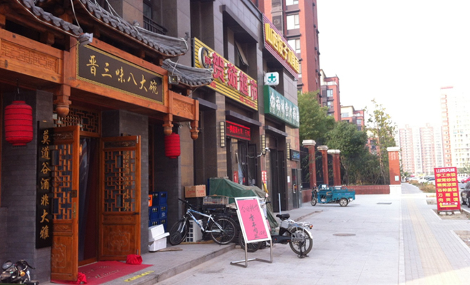 融創(chuàng)長(zhǎng)灘壹號(hào)項(xiàng)目四周,記者步行10分鐘,繞道項(xiàng)目東側(cè),看到晉三味八大碗飯店、小型超市以及福林堂大藥店,除此以外其余的生活配套,例如菜市場(chǎng)、洗衣店、自動(dòng)提款機(jī)、寵物醫(yī)院、報(bào)刊亭等均需去景文屯村的下一站南百路才可以提供給業(yè)主使用。
