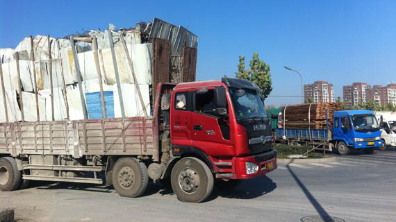 項目周圍基建設(shè)施雖然還算可以,路面較為寬廣,但附近的交通安全問題不容忽視。記者探訪時看到,項目南側(cè)大門外的道路上大卡車、大貨車橫行,而道路距離最近的樓座不到10米。
