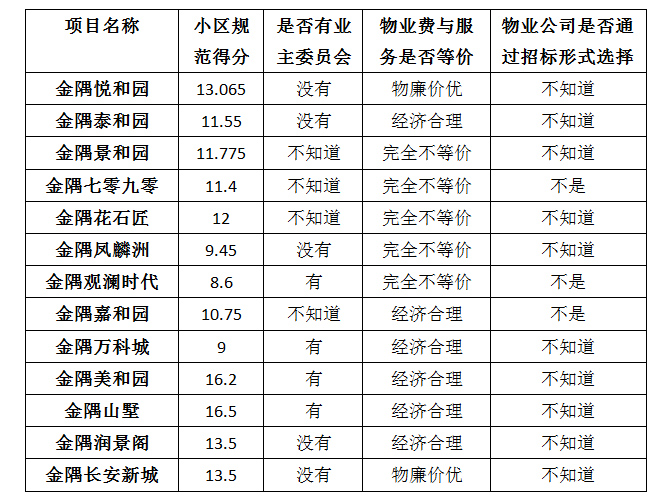 四、小區(qū)物業(yè)規(guī)范調(diào)查表