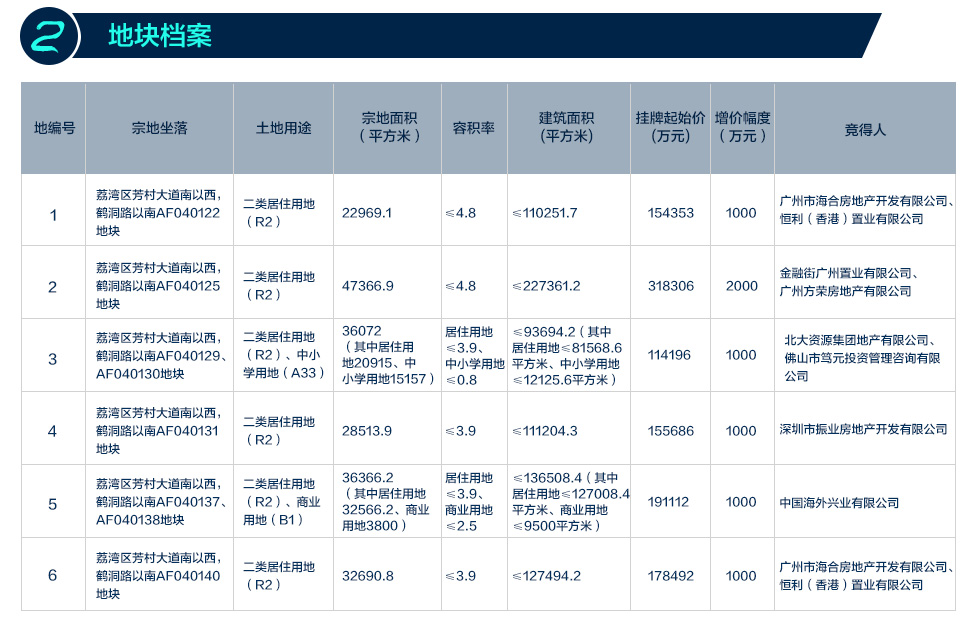 在前兩宗地均底價成交后,廣鋼的第三宗地——荔灣區(qū)芳村大道南以西,鶴洞路以南AF040129、AF040130地塊終于打破了一家舉牌的局面,在幾輪并不激烈的交替出牌后,18號北大資源力壓16號,以13.7億拿下地塊。