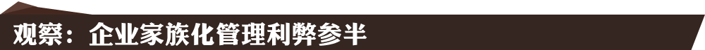 然而,在外界看來,“家族化”管理和“去家族化”管理各有利弊。國泰君安分析師余立峰在接受新華網的采訪時表示,“家族化”管理在企業(yè)發(fā)展初期還是有一定的優(yōu)勢,因為規(guī)模比較小,區(qū)域化較強,管理權制也相對集中,這樣有利于公司整體的規(guī)模和銷售的擴大。隨著企業(yè)的發(fā)展到了一定程度以后,也就是到了全國化布局的時候,需要區(qū)域上的分制,使總部和區(qū)域管理出現分制。