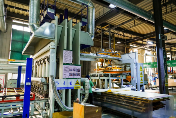 临沂工厂则通过十一条自动压贴生产线、一条PET生产线、两条成品检板线等高效配置,形成了完善的贴面板加工体系,承担着从基板到成品的高效协同任务。