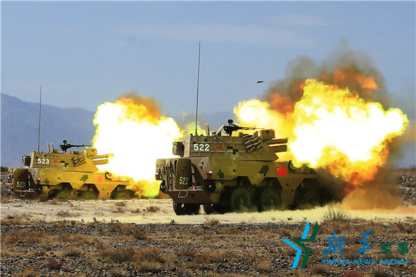 ??? 在吉爾吉斯斯坦巴雷克奇舉行的“和平使命—2016”上海合作組織聯(lián)合反恐軍事演習(xí)第三次實(shí)兵實(shí)彈合練中,中方自行火炮進(jìn)行實(shí)彈射擊(9月19日攝)。新華社發(fā)(王寧 攝)