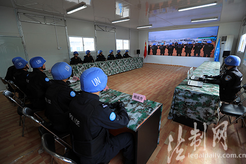 圖為維和警察防暴隊(duì)召開(kāi)勤務(wù)分析會(huì)