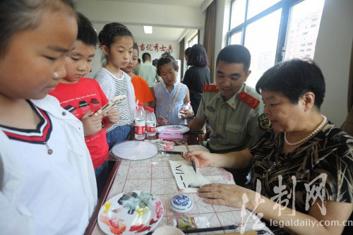 ????為慶祝建軍90周年,7月26日上午,在“八一”建軍節(jié)即將來臨之際,舟山市定海區(qū)昌國(guó)街道夕陽紅書畫攝影協(xié)會(huì)的七位老藝術(shù)家和翁山社區(qū)的十幾位小朋友一起走進(jìn)浙江邊防總隊(duì)舟山邊防支隊(duì),開展“情系夕陽紅,警民魚水情”慰問活動(dòng),受到了官兵們的熱烈歡迎。
