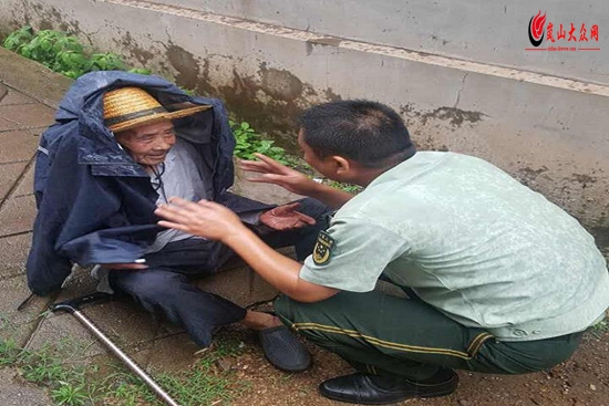 ????8月2日16時許,該所官兵在轄區(qū)官草汪村走訪時,發(fā)現(xiàn)在村馬路中間坐著一名陌生的老人,遂上前詢問,由于老人年齡較大,說話不夠清晰,只得知老人姓劉,今年96歲,再詳細詢問其家庭住址以及親屬姓名就說不清了。隨后,官兵為老人拍照,通過地方黨委微信工作群轉發(fā)至各個村委辨認老人照片,經(jīng)過長達近2小時的聯(lián)系等待,終于聯(lián)系上了老人親屬。