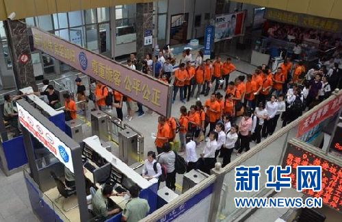 ????6月16日入境的旅客中有一支回鄉(xiāng)探親的臺胞旅游團,這些臺胞生在東北長在臺灣,這次回鄉(xiāng)探親他們盼望已久,異常開心。為了讓他們感受到故鄉(xiāng)的親切和溫暖,長春邊防檢查站提前2天兌現(xiàn)了“通關(guān)排隊不超過30分鐘”的承諾?!爱?dāng)日零時,從臺北飛往長春龍嘉國際機場的CZ3052客機著陸后,我們通過增派現(xiàn)場勤務(wù)力量、運用大數(shù)據(jù)進行實時分析比對、開通婦幼病殘綠色通道等方式,將旅客進行精準(zhǔn)分流引導(dǎo),提升人工比對速度和證件信息的快速核查,保障出入境旅客的順暢通關(guān)?!遍L春邊防檢查站政委溫劍利介紹說,“在方便旅客順暢通關(guān)的同時,檢查站的官兵們還給驗證大廳里候檢的臺胞送去了熱氣騰騰的粽子、雞蛋,寓意吉祥的五彩繩、香包,臺胞們的親切和感動之情溢于言表。”(管清江 許航)