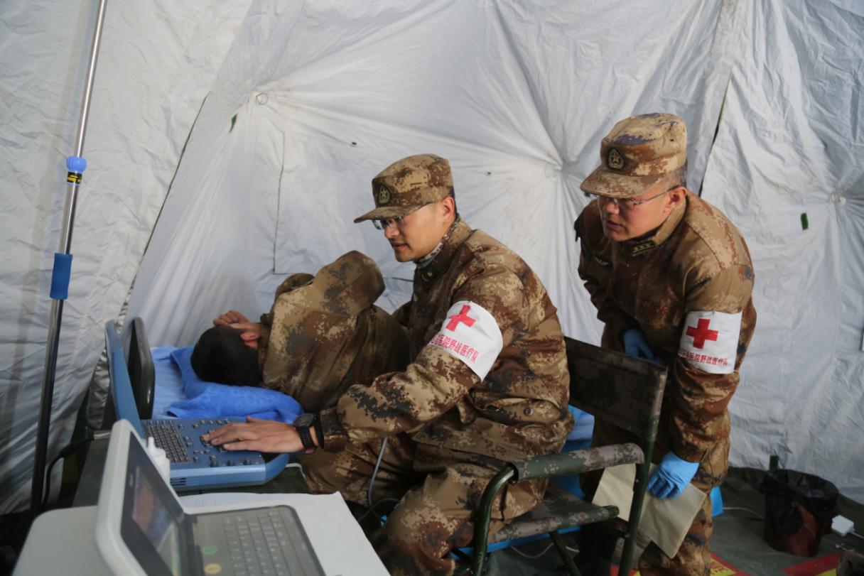 ????醫(yī)療隊員為戰(zhàn)士做B超
