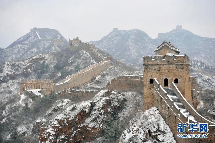 這是2月23日拍攝的金山嶺長城雪景。受冷空氣影響,河北省承德市灤平縣當日出現(xiàn)降雪天氣。雪后的金山嶺長城銀裝素裹,美如畫卷。新華社發(fā)(王立群 攝)