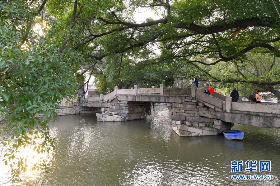 這是2月21日拍攝的福州萬(wàn)壽橋。橋旁綠樹(shù)成蔭,使這里成為臨近居民和游客避暑遮陰的好去處。新華社記者 林善傳 攝