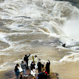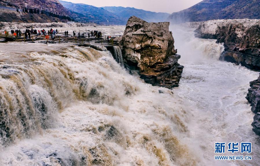 從2月24日起,陜西壺口瀑布景區(qū)恢復對外開放。隨著氣溫回升,黃河上游冰雪消融,水量增大,壺口瀑布的主瀑布恢復了往日奔騰咆哮的氣勢,黃河之水奔騰而下,形成壯觀瀑布群。