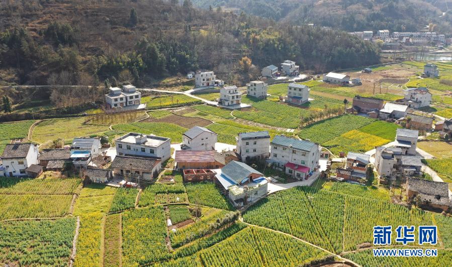 3月3日,安康市漢濱區(qū)迎風(fēng)壩油菜花盛開(無人機照片)。新華社記者 陶明 攝