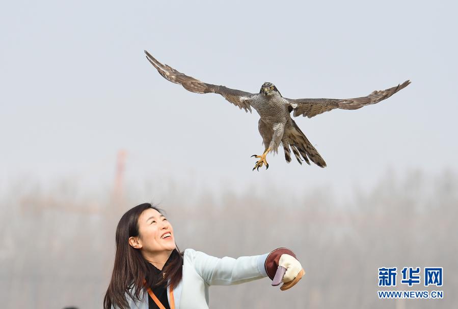 3月14日,沈陽猛禽救助中心志愿者將救助的蒼鷹進行放飛。