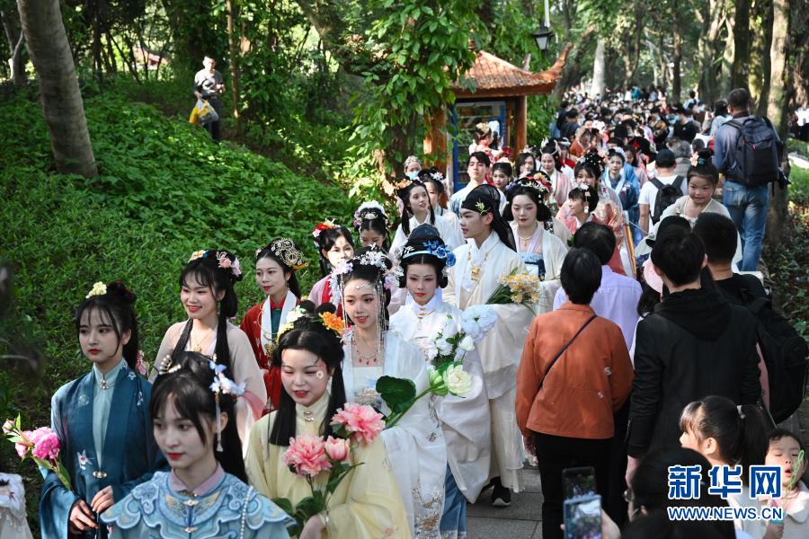 3月13日至14日,第二屆福州西湖花朝節(jié)系列活動在福州西湖公園舉行,流觴詩會、漢服雅集、百花祭典、簪花游園等10場活動再現(xiàn)花朝節(jié)傳統(tǒng)民俗文化之美。