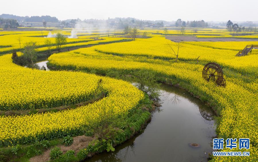 安州區(qū)樂興鎮(zhèn)蓮花村的油菜花海(3月14日攝,無(wú)人機(jī)照片)。新華社記者 江宏景 攝