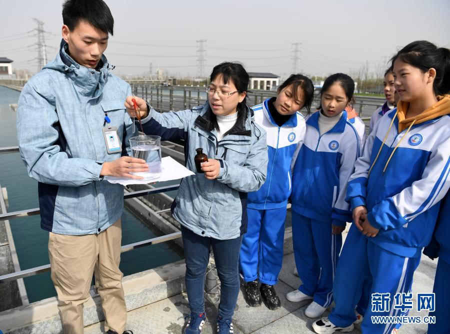 3月21日,水廠工作人員向?qū)W生演示應(yīng)急檢測(cè)過(guò)程。