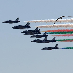 4月25日,意大利“三色箭”飛行表演隊(duì)在羅馬舉行的紀(jì)念儀式上噴出代表意大利國(guó)旗顏色的紅白綠三色煙霧。