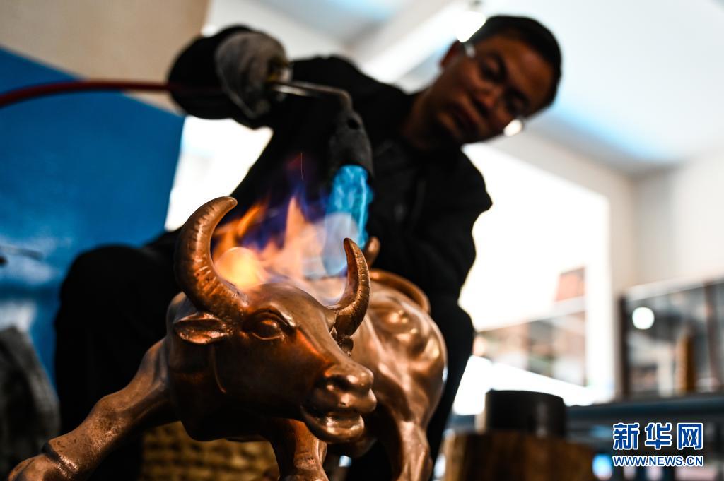 地處滇東北、烏蒙山腹地的云南會澤縣流傳著具有300多年歷史的斑銅制作工藝。斑銅工藝復雜,要采用高品位的銅為原料,經(jīng)過20余道工序制作而成。產(chǎn)品“妙在有斑,貴在渾厚”,風格獨樹一幟。33歲的張偉是會澤“張氏斑銅”的第十三代傳人。自幼深受地域文化和家庭熏陶的他,大學畢業(yè)后,返鄉(xiāng)從事斑銅制作工作。在會澤古城的“銅匠街”,張偉創(chuàng)辦了斑銅傳習館,不斷研發(fā)斑銅新產(chǎn)品、傳承著這項非遺技藝?!鞍咩~是一種情感、一種文化,希望在我們這代人的努力下能夠更好地將它傳承下去,讓更多人了解斑銅的獨特魅力?!睆垈フf。