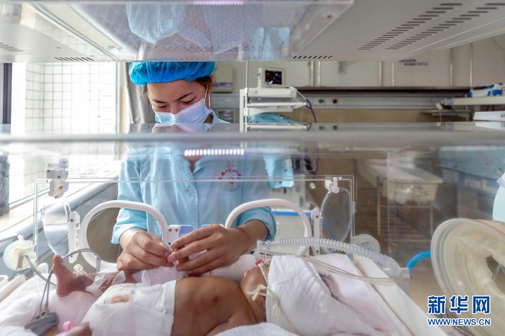 5月11日,護士在貴州省黔西市人民醫(yī)院新生兒科為患兒做晨間護理。