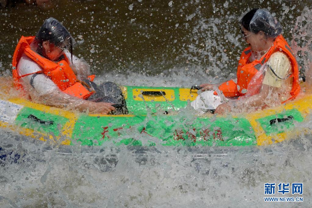 5月12日,游客在河北省邢臺(tái)市天河山景區(qū)漂流。