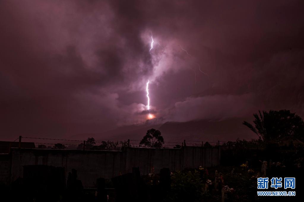 這是5月13日在印度尼西亞北蘇門(mén)答臘省拍攝的錫納朋火山上空的閃電(長(zhǎng)時(shí)間曝光照片)。