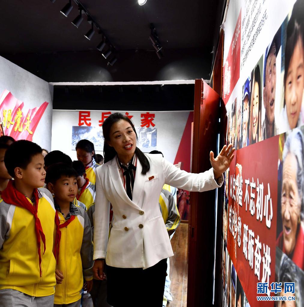 5月21日,在棗莊市臺兒莊區(qū)張山子鎮(zhèn)丁莊村,“學(xué)黨史惠民”教育小分隊成員李冉為學(xué)生們講解八路軍115師運河支隊的故事。