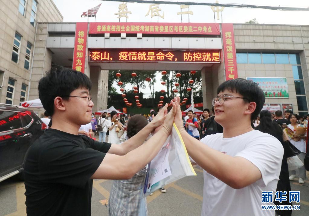 6月9日,在湖南省婁底市第二中學(xué)考點(diǎn),老大李慶國(guó)(左)和老三李慶民考完最后一科生物后,在校門口相遇。