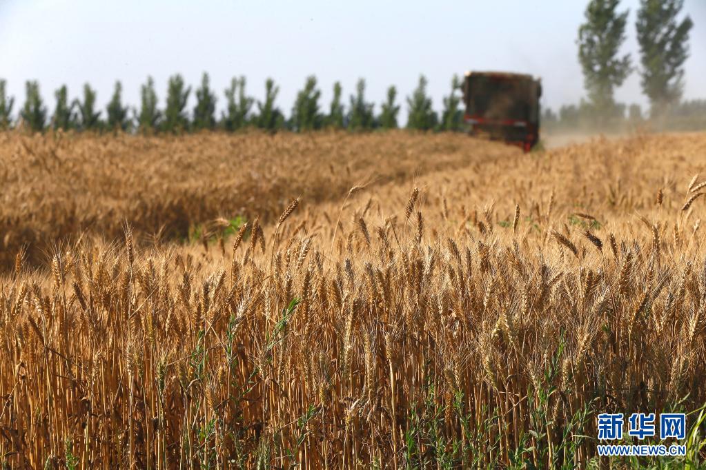 6月20日,收割機在山東省青島市即墨區(qū)段泊嵐鎮(zhèn)姜家坡村的麥田內(nèi)作業(yè)。