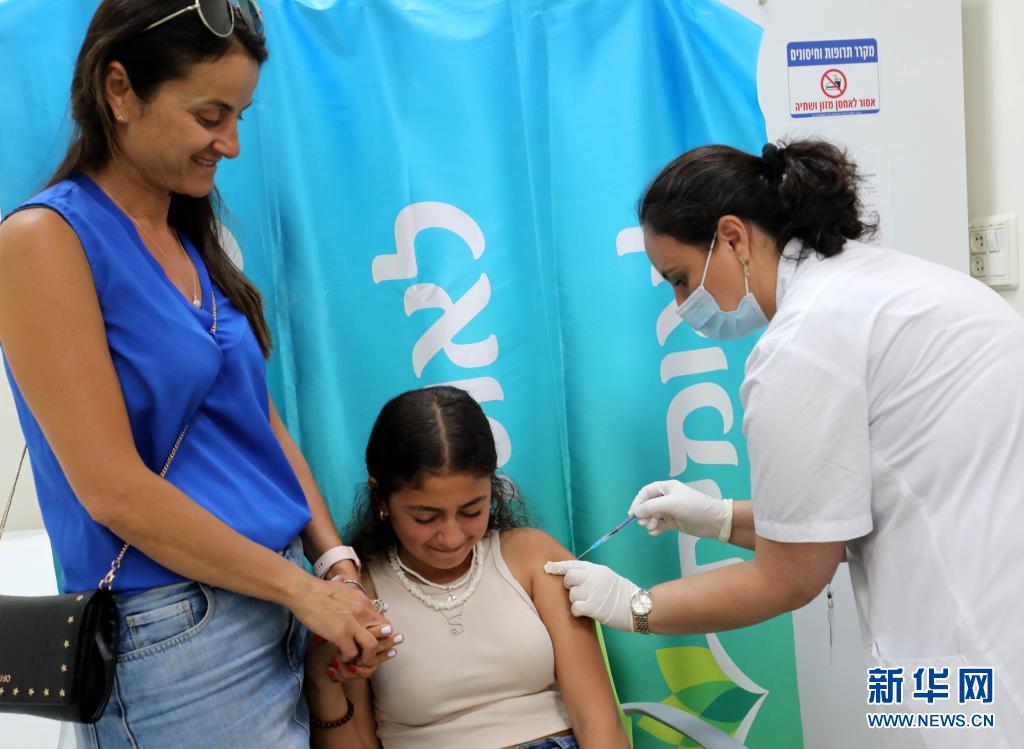 6月22日,在以色列中部城市莫迪因的一處醫(yī)療保健服務站內,一名未成年人接種新冠疫苗。