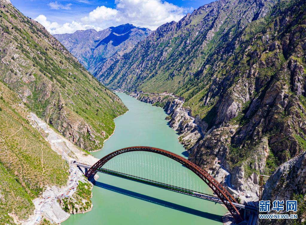 試運(yùn)行的復(fù)興號(hào)列車行駛在藏木特大橋(6月17日攝,無人機(jī)照片)。