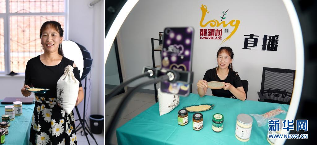 拼版照片:左圖為宋俊麗在山西省平順縣龍鎮(zhèn)村電商服務(wù)中心直播間里;右圖為宋俊麗通過網(wǎng)絡(luò)直播介紹農(nóng)產(chǎn)品(7月8日攝)。2018年,時(shí)年29歲的宋俊麗參加了縣里組織的電商培訓(xùn),在電商導(dǎo)師的鼓勵(lì)下,她嘗試了首次直播,當(dāng)時(shí)直播間里只有幾名觀眾。在自己的堅(jiān)持和電商導(dǎo)師的幫助下,如今她已收獲了不少粉絲,每次上線直播,粉絲們都會讓她推薦當(dāng)?shù)氐奶厣r(nóng)產(chǎn)品。