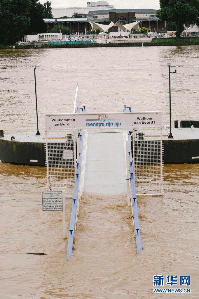 7月15日,在德國(guó)西部城市科隆,一處渡口被上漲的萊茵河水淹沒。