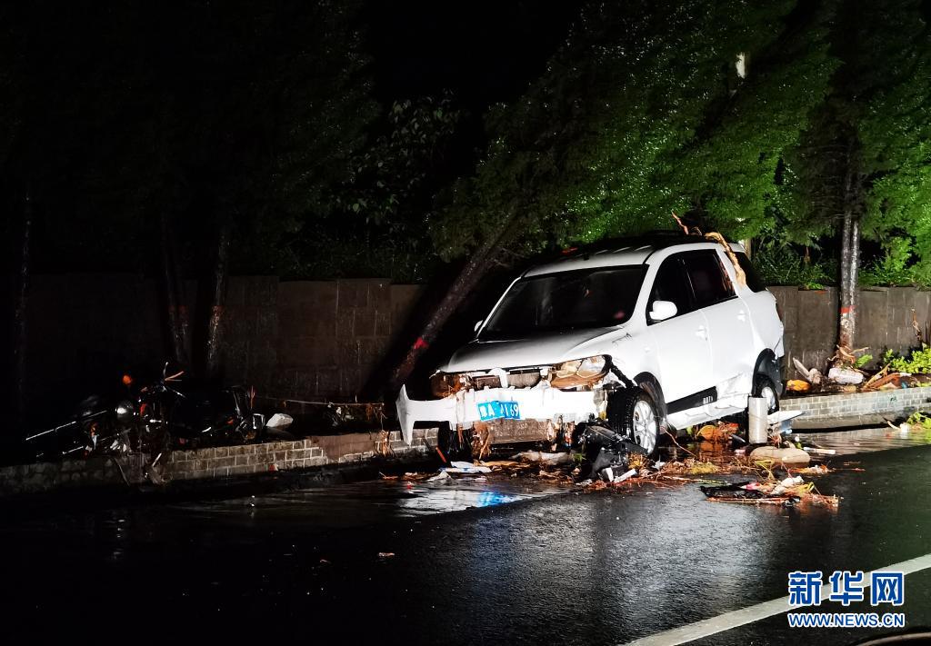 7月21日在310國(guó)道米河鎮(zhèn)段拍攝的一輛因洪水損壞的汽車。