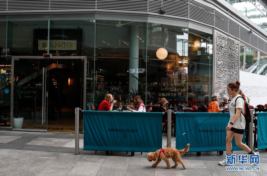 7月26日,人們坐在英國(guó)倫敦維多利亞一家餐廳的戶(hù)外餐飲區(qū)。