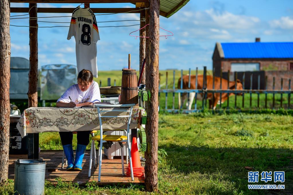 盛夏時節(jié)的呼倫貝爾草原美不勝收,吉布斯樂瑪一邊幫助父母放牛,一邊學(xué)習(xí),空閑時間與足球為伴,假期生活分外充實。