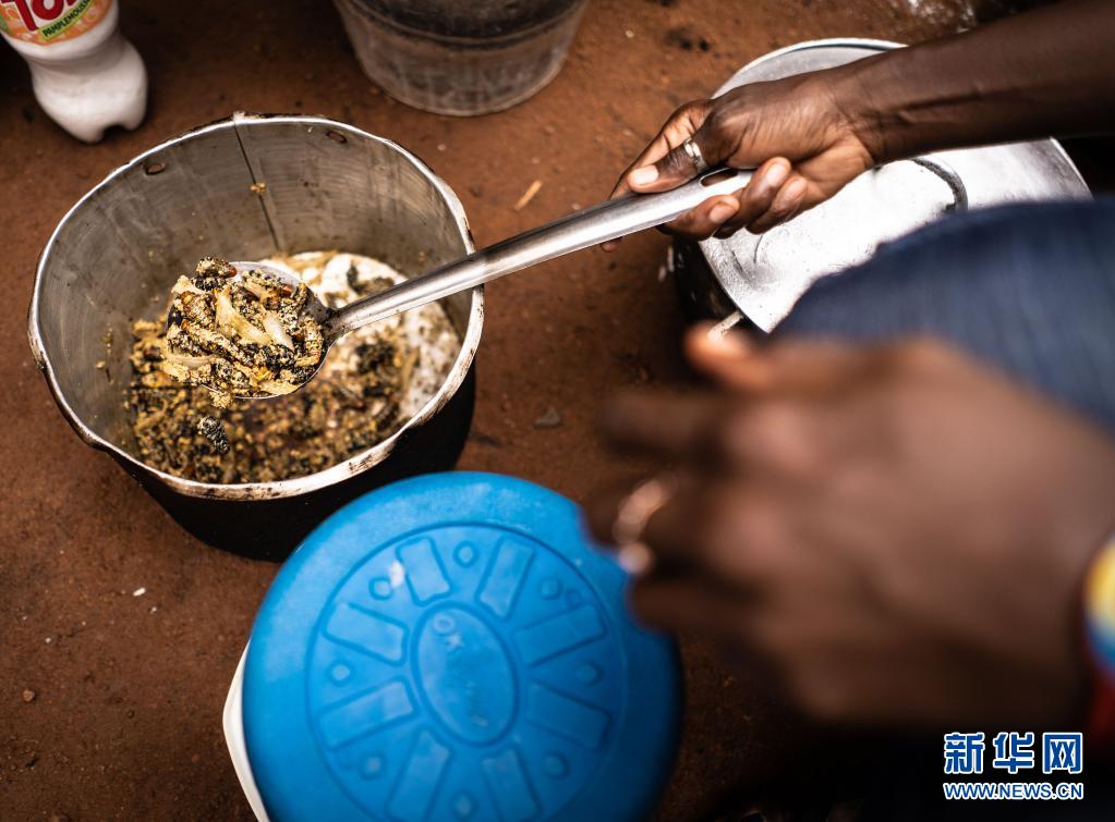 對于生活在糧食匱乏狀況下的居民,蟲子不僅意味著食物可以果腹,也是財富的來源。在雨季,來自首都班吉的經(jīng)銷商每天都騎著摩托車來到當(dāng)?shù)?,收購?dāng)?shù)鼐用褡淼拿x,然后賣到首都消費者手里。