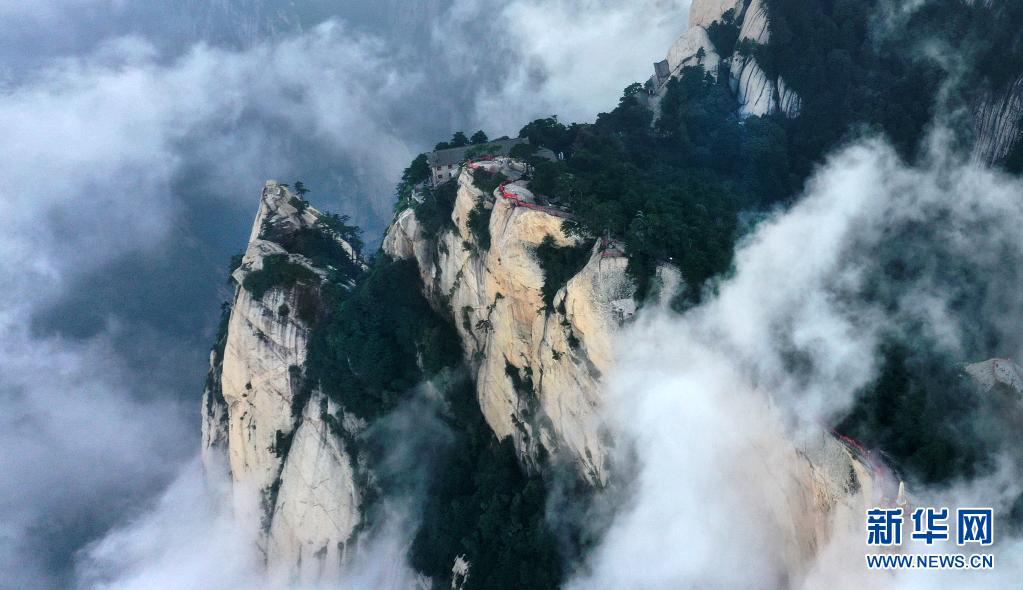 初秋時節(jié),陜西省渭南市華山景區(qū)云霧飄蕩,如夢似幻宛如仙境。